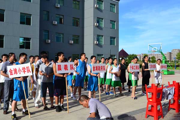 金滩镇党委书记金海华宣布篮球赛开幕。峡江水利枢纽樟山防护工程施工项目部经理彭红军代表公司致开幕词。他说:“公司携手金滩镇政府举办此次篮球赛,旨在增进公司与金滩人民之间的团结和友谊,丰富公司员工的文体生活,树立江西水建企业形象。希望参加比赛的各支球队和队员发挥‘更快、更高、更强’的奥林匹克精神,坚持友谊第一的原则,顽强拼搏,赛出佳绩,赛出风格。”作为开展建党91周年庆祝活动之一,通过本次比赛,共同祝愿伟大的中国共产党和国家各项建设事业更加繁荣昌盛。