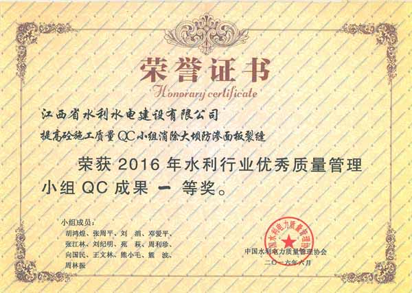 2016年6月20日至24日,中国水利电力质量管理协会水利分会在安徽省安庆市,举办了2016年水利行业优秀质量管理小组成果发表会,并在本次发表会上发布了156项QC成果。中国水利电力质量管理协会水利分会组织评审专家,对发表的QC成果进行了现场评审,对经评审获得一、二等奖的单位进行了表彰。本次成果发表会上,我公司共有3项QC成果获一等奖,两项QC成果获二等奖,成绩较往年有较大幅度提高。