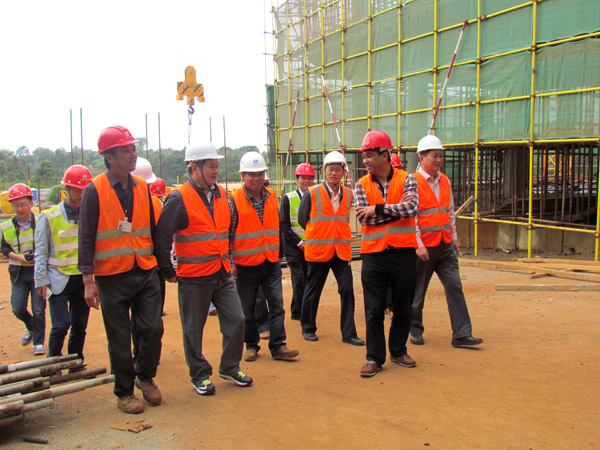 上午11时,董事长王元旦一行在双河二期管委会淦晶副主席的主持下召开了管委会扩大会议,项目经理彭红军做了项目施工管理工作报告,详细汇报近期施工管理及进展情况。结合项目的现场检查情况,王元旦董事长首先对项目的工程安全和质量表示了肯定。他指出,应进一步加强和完善过程控制,把安全和质量管理要落实到位。董事长特别强调,项目现已进入高空作业阶段,要加大管理力度,排除施工过程中存在的安全隐患,提高员工的安全意识,从源头降低安全风险。