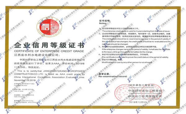 此次公司再度荣获“2018年度AAA级信用企业”称号,源于数百名江西水建海外人的共同努力,他对于公司进一步提升品牌影响力,拓展国际市场具有十分重要的意义。